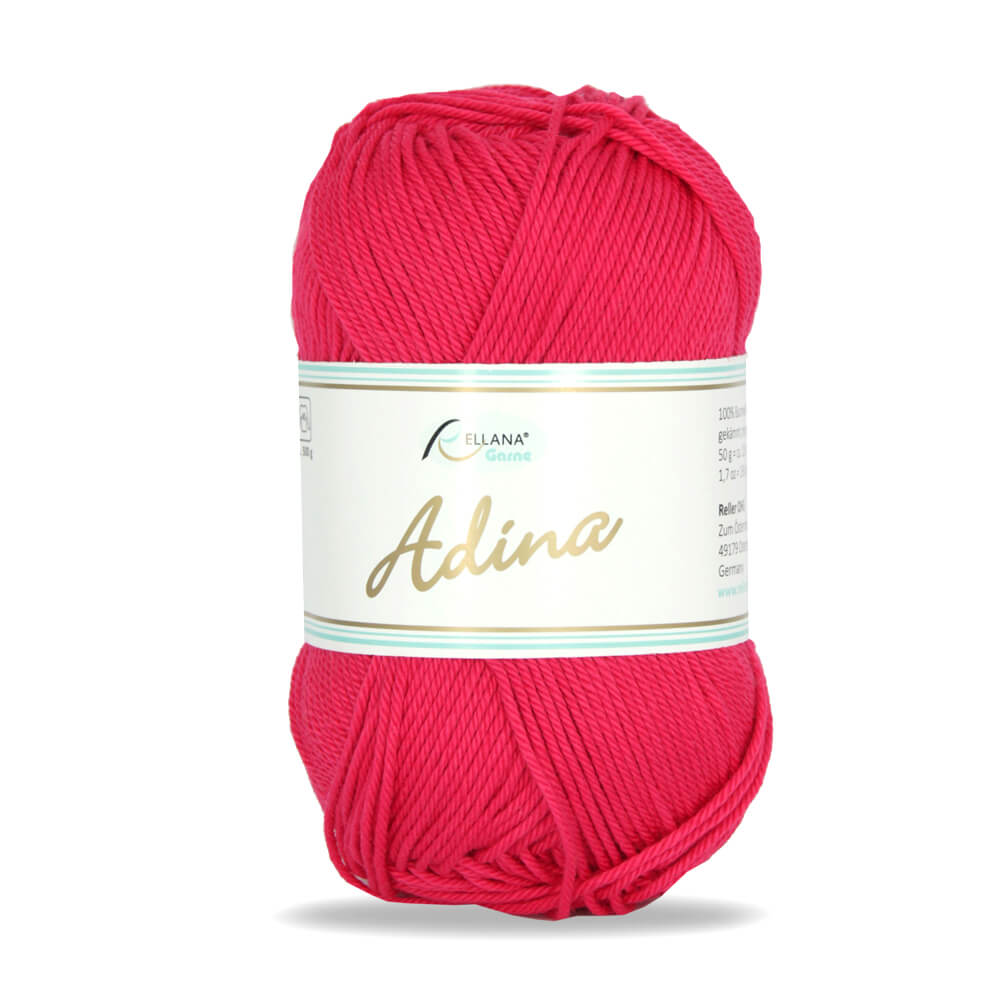 Adina von Rellana ist ein stabiles Garn aus 100 % Baumwolle, welches mercerisiert und gasiert ist. Durch das Veredlungsverfahren erhält die Baumwolle einen besonderen, seidigen Glanz und ist gegen Einlaufen geschützt. Adina ist dank der kühlen und angenehmen Trageeigenschaften gut für sommerliche Kleidungsstücke und leichte Accessoires. Aber auch ideal für Amigurumis und Topflappen (für Topflappen wäre es aber besser das Garn doppelt zu nehmen).