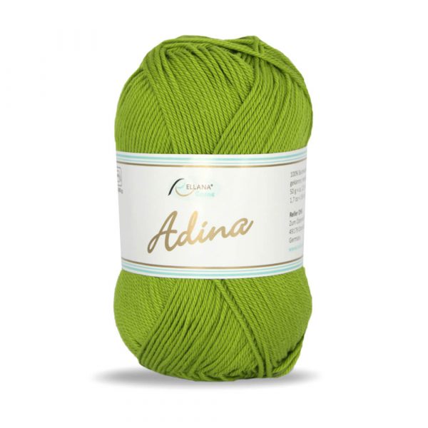 Adina von Rellana ist ein stabiles Garn aus 100 % Baumwolle, welches mercerisiert und gasiert ist. Durch das Veredlungsverfahren erhält die Baumwolle einen besonderen, seidigen Glanz und ist gegen Einlaufen geschützt. Adina ist dank der kühlen und angenehmen Trageeigenschaften gut für sommerliche Kleidungsstücke und leichte Accessoires. Aber auch ideal für Amigurumis und Topflappen (für Topflappen wäre es aber besser das Garn doppelt zu nehmen).