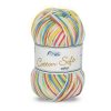 Cotton Soft Color ist ein tolles Mischgarn, um z. B. Mützen oder Schals daraus zu arbeiten. Wenn man es etwas dicker möchte, einfach den Faden doppelt nehmen. In dieser Sorte ist der Verlauf bereits in das Knäuel eingearbeitet