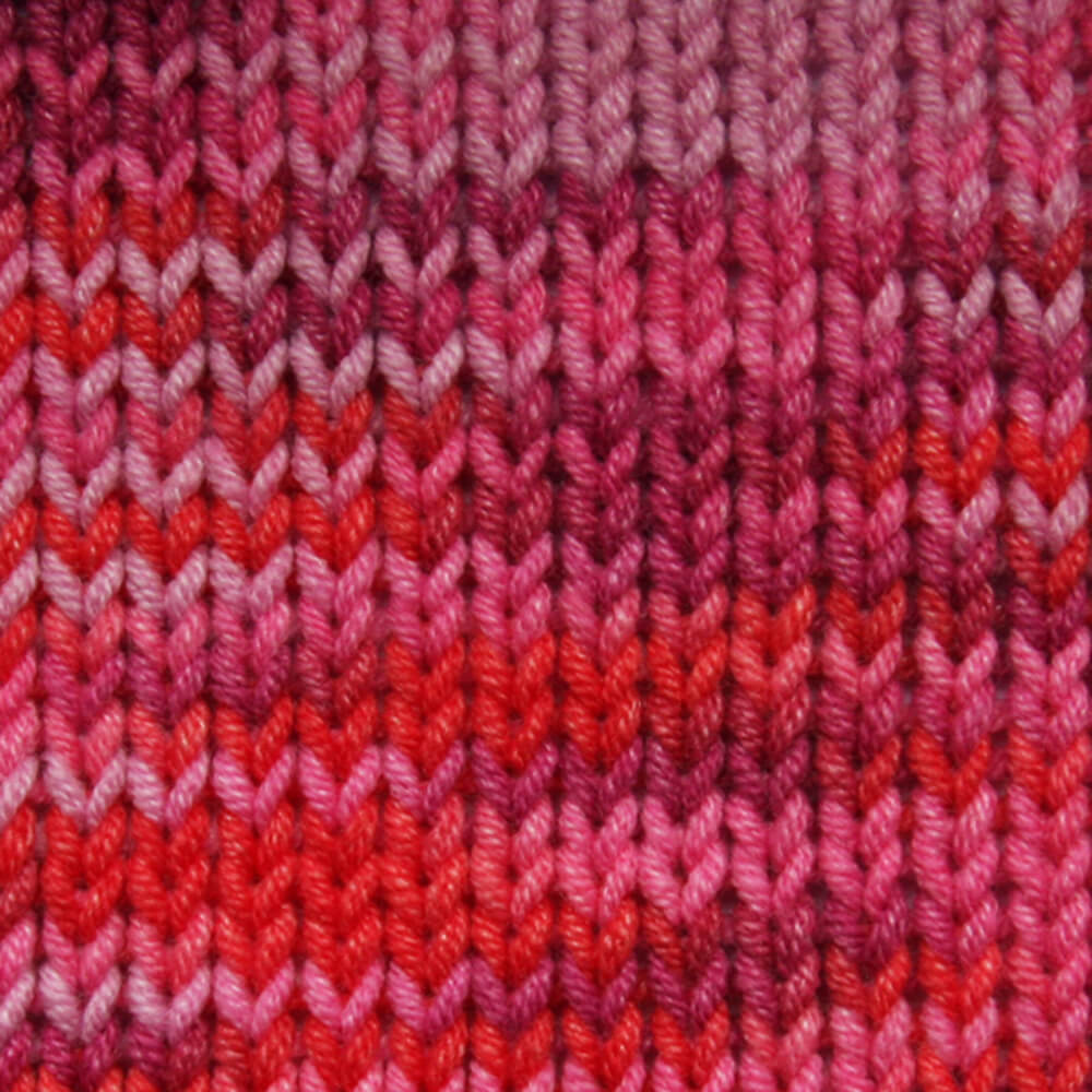 Cotton Soft Color ist ein tolles Mischgarn, um z. B. Mützen oder Schals daraus zu arbeiten. Wenn man es etwas dicker möchte, einfach den Faden doppelt nehmen. In dieser Sorte ist der Verlauf bereits in das Knäuel eingearbeitet