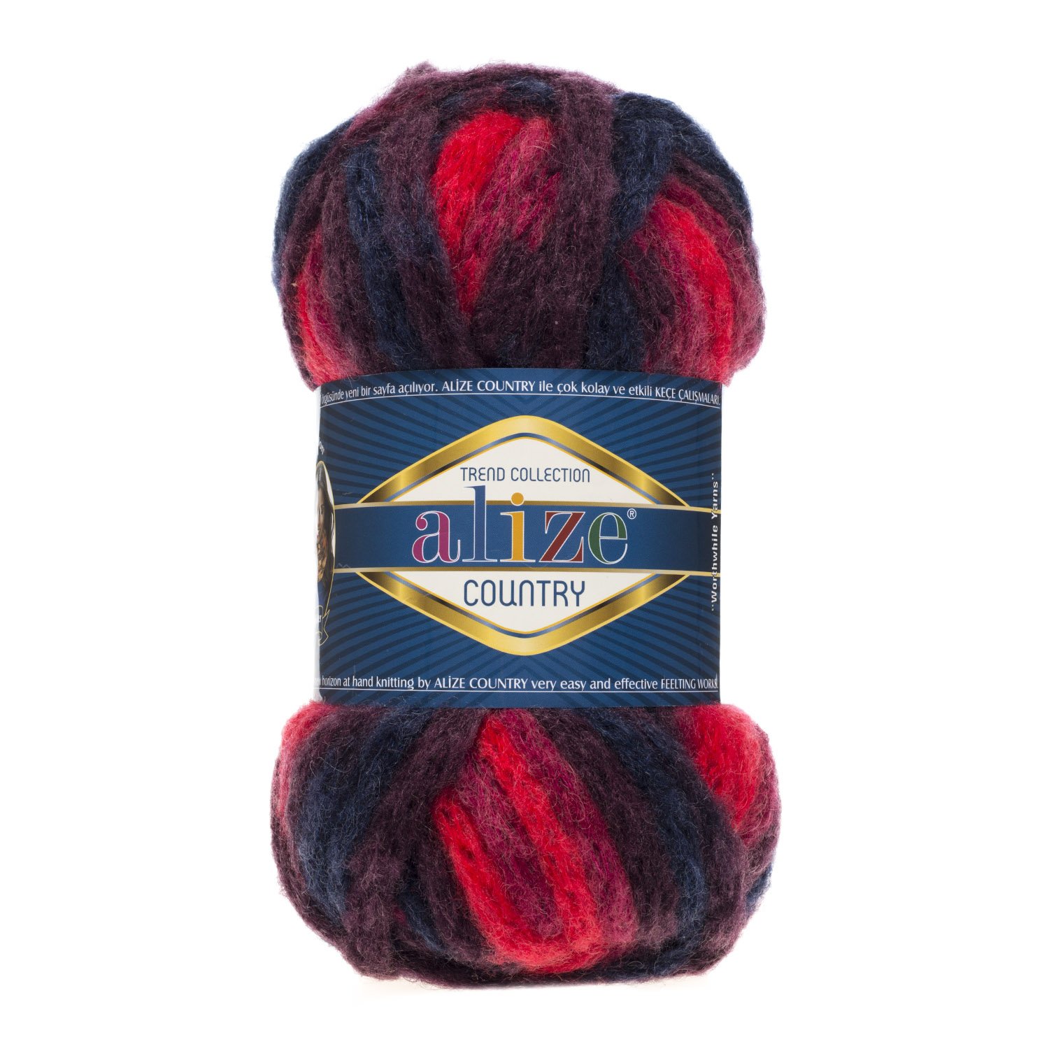 Country ist ein dickes, winterliches Garn, es ist bestens für Acceccoires wie z. B. Tücher geeignet. Es kann auch sehr schön damit gewebt werden.