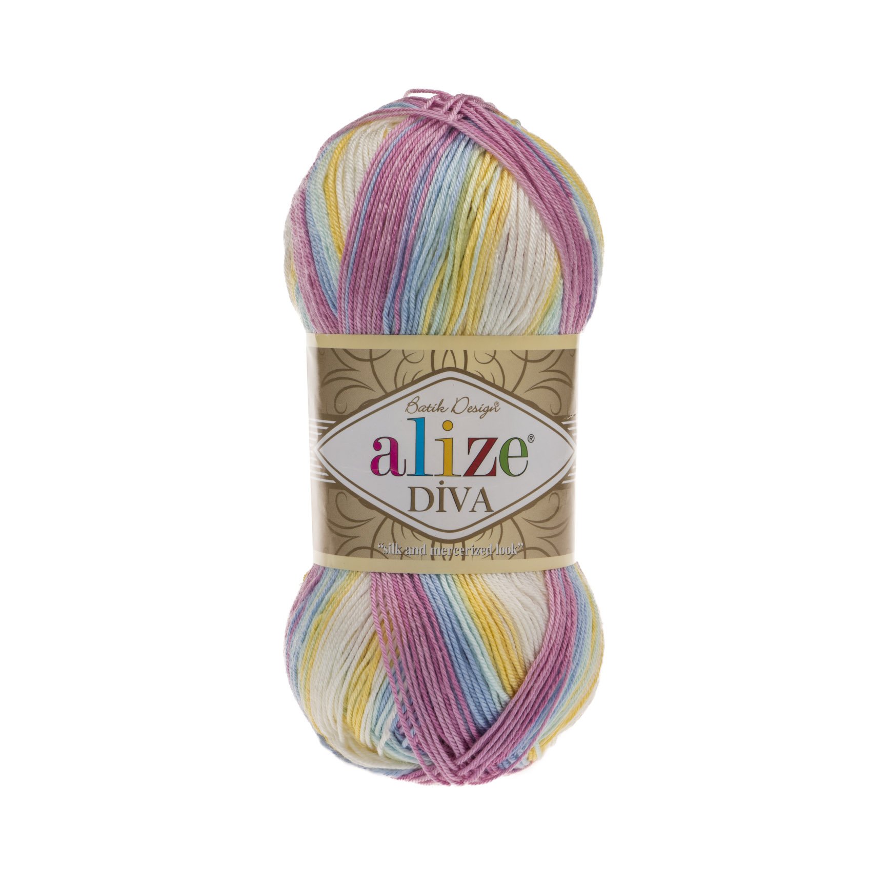 Die Diva Batik von Alize ist eine leichtes, glänzendes Garn, bestehend aus Microfaser. Durch den „Silk Effect“ fühlt sich die türkische Wolle sehr angenehm an. Es hat einen schönen Verlauf im Handarbeitsstück.
