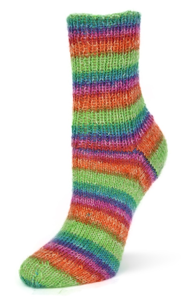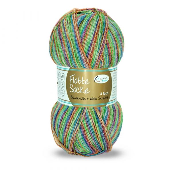 Flotte Socke 4f. Baumwolle + Wolle Stretch Nr. 1009 grün-rosa-orange