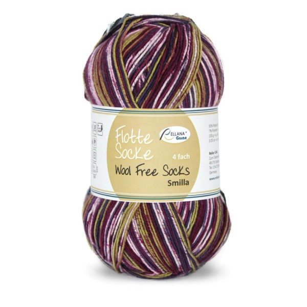 Das Sockengarn Flotte Socke von Rellana ist 4fädig. Das Garn ist strapazierfähig, waschmaschinenfest und trocknergeeignet. Das Sockengarn „Wool Free“ ist für Wollallergiker gut geeignet !