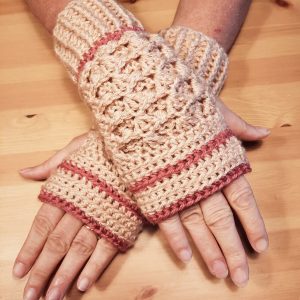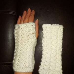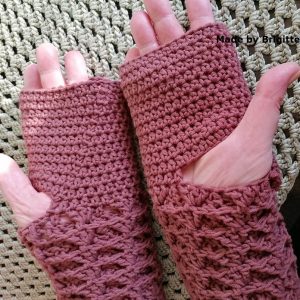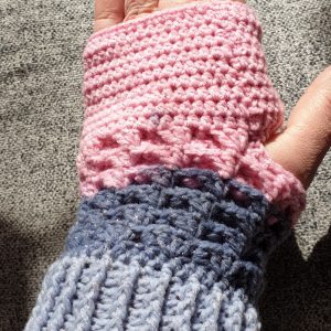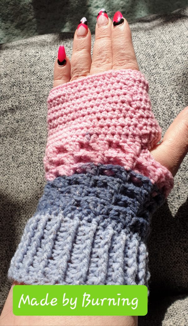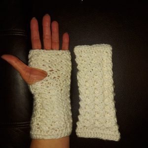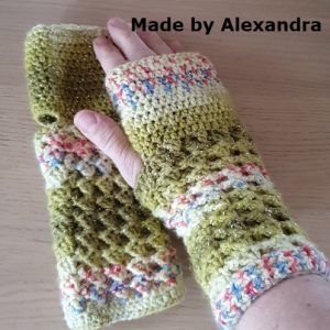 Die Armstulpen sind mit jedem Garn häkelbar, allerdings empehlen wir ein etwas dickeres zu nehmen, ab Nadelstärke 3,5. So sind sie einfach schöner zu tragen und zu arbeiten. Sie passen dann besser.