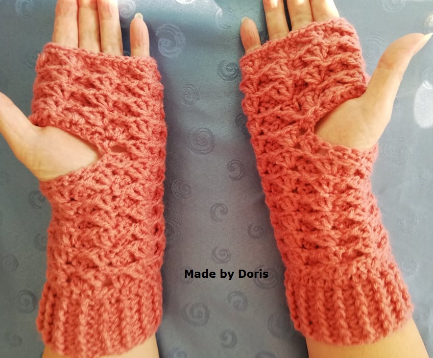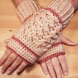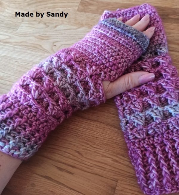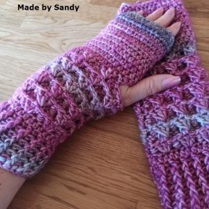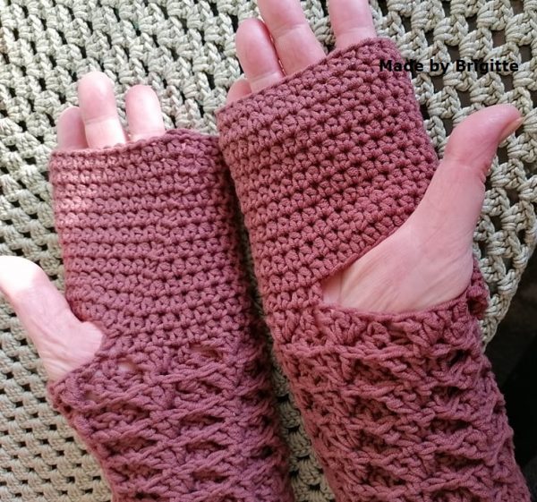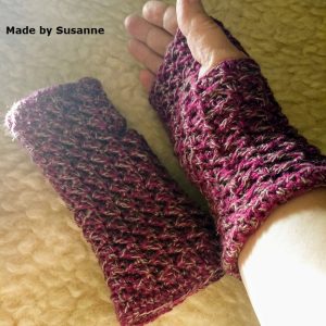 Die Armstulpen sind so ausgelegt, dass sie sowohl in langer oder kurzer Variante gehäkelt werden können. Ebenfalls kann man sie an die Armgröße anpassen, so dass sie für alle Größen gehäkelt werden können.