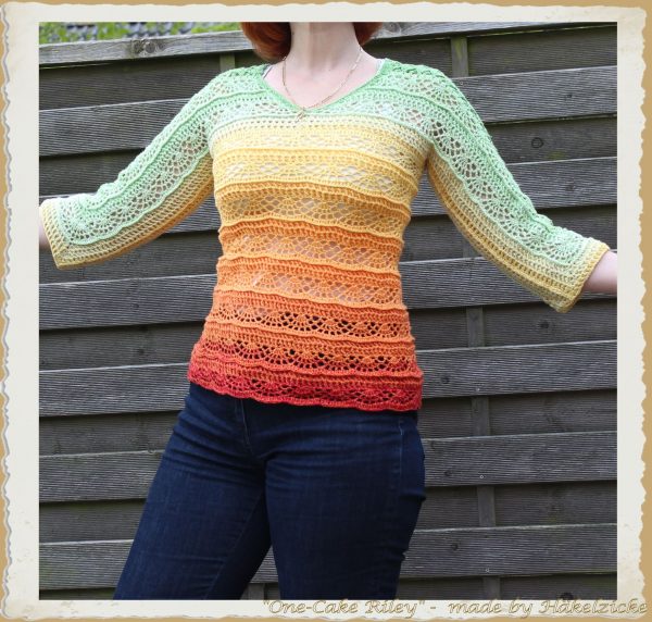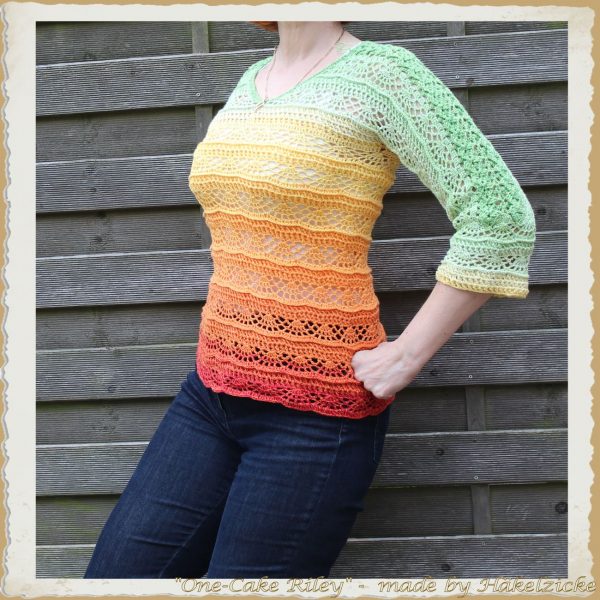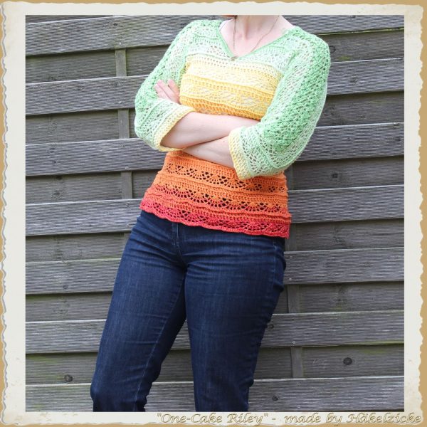 Du kannst deinen „One-Cake-Riley“ in gerade oder A-Linie häkeln, damit auch eine schmale Taille oder eine breite Hüfte gut zur Geltung kommen. Selbstverständtlich brauchst Du ihn nicht so körperbetohnt häkeln wie ich, sondern kannst ganz einfach den Korpus breit und Oversize machen. Das bestimmst Du selbst, ganz einfach im Moment des Ärmelschließens. Das wird auch alles in der Anleitung erklärt.🦋🦋🦋