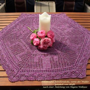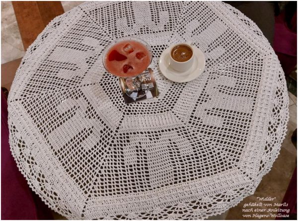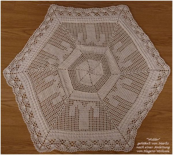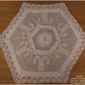 Die Tischdecke aus der Sternzeichen-Serie kann mit jedem Garn gearbeitet werden, was man gern möchte. Aber wir empfehlen entweder in Uni oder mit einem langen Verlauf etwas zu nehmen, weil dann die Muster besser rauskommen. Es gibt für jedes Sternzeichen ein Tuch.