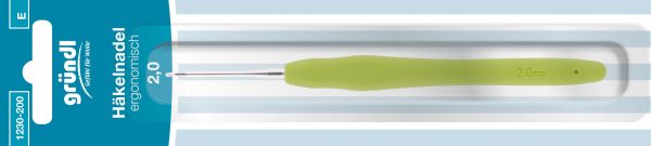 Diese Häkelnadel von Gründl hat einen gummierten Griff und ist ergonomisch geformt. Dadurch liegt sie gut in der Hand. Der Kopf ist aus Aluminium.