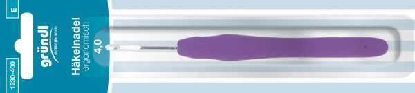 Diese Häkelnadel von Gründl hat einen gummierten Griff und ist ergonomisch geformt. Dadurch liegt sie gut in der Hand. Der Kopf ist aus Aluminium.