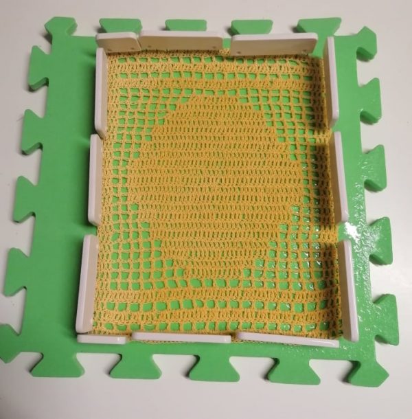 Die Spann-Nadeln sind hervorragend dazu geeignet, um ein Häkel- oder Strickstück zu spannen, ohne dass man mit einer einzelnen Nadel anfangen muss. Das Set besteht aus 20 „Blöcken“, 12 Blöcke haben 8 Nadeln und 8 Blöcke haben 4 Nadeln. So ist das Spannen eine Leichtigkeit. Sie eignen sich z. B. um ein Tuch oder ein Filethäkelstück zu spannen.