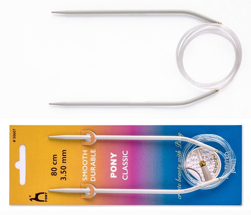 Die traditionelle Stricknadel von PONY in klassisch silbergrau. Die Nadeln sind Kunststoff, die Seile sind transparent. Das Seil ist nahtlos an der Nadel befestigt, so dass man hervorragend mit den Rundstricknadeln stricken kann. Die Nadeln sind insgesamt 80 cm lang. (Das Bild ist ein Beispielbild)