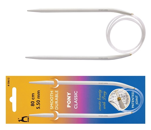 Die traditionelle Stricknadel von PONY in klassisch silbergrau. Die Nadeln sind Kunststoff, die Seile sind transparent. Das Seil ist nahtlos an der Nadel befestigt, so dass man hervorragend mit den Rundstricknadeln stricken kann. Die Nadeln sind insgesamt 80 cm lang. (Das Bild ist ein Beispielbild)