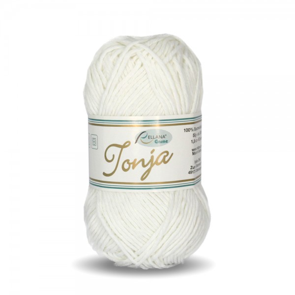 Tonja ist ein Schul- oder Topflappengarn, es ist dicker als andere Baumwolle, daher am besten geeignet für Topflappen. Es ist ein stabiles Garn aus 100 % Baumwolle. Man kann auch schöne andere Accessoires aus der Tonja arbeiten, z. B. Eierwärmer.