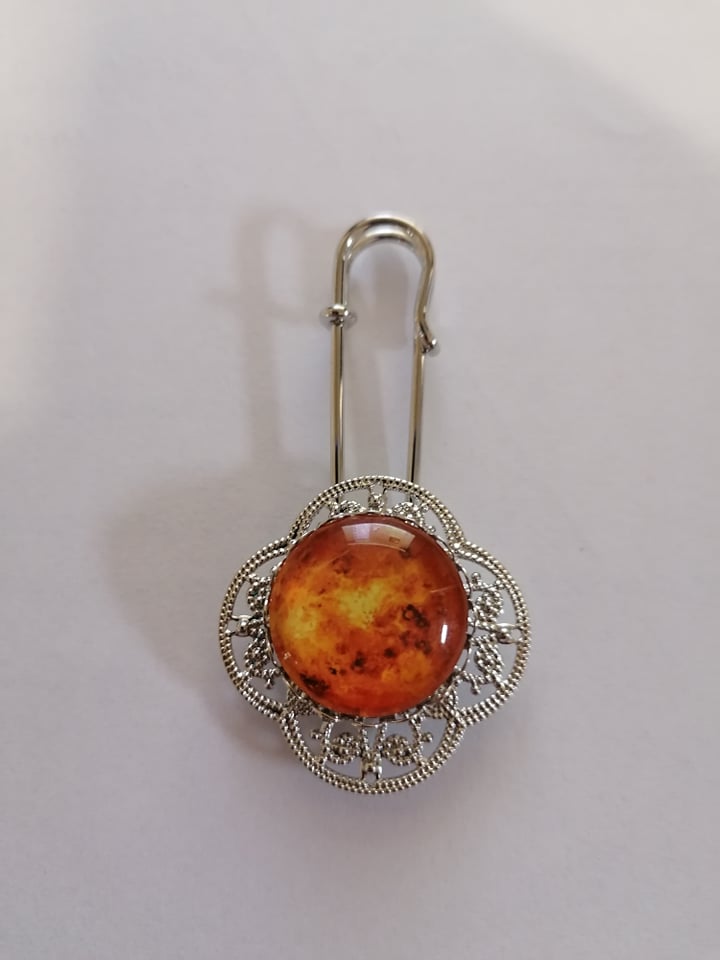 Tuchnadel silber, Stein orange (AUSVERKAUF, WENN WEG DANN WEG)