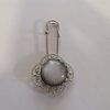 Die Tuchnadel besteht aus einem silbernen Ansteckstück und einem Cabochon in 20 mm Durchmesser. Das Cabochon ist aufgeklebt und die Tuchnadel ist ein Modeschmuck.