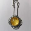 Die Tuchnadel besteht aus einem silbernen Ansteckstück und einem Cabochon in 20 mm Durchmesser. Das Cabochon ist aufgeklebt und die Tuchnadel ist ein Modeschmuck.